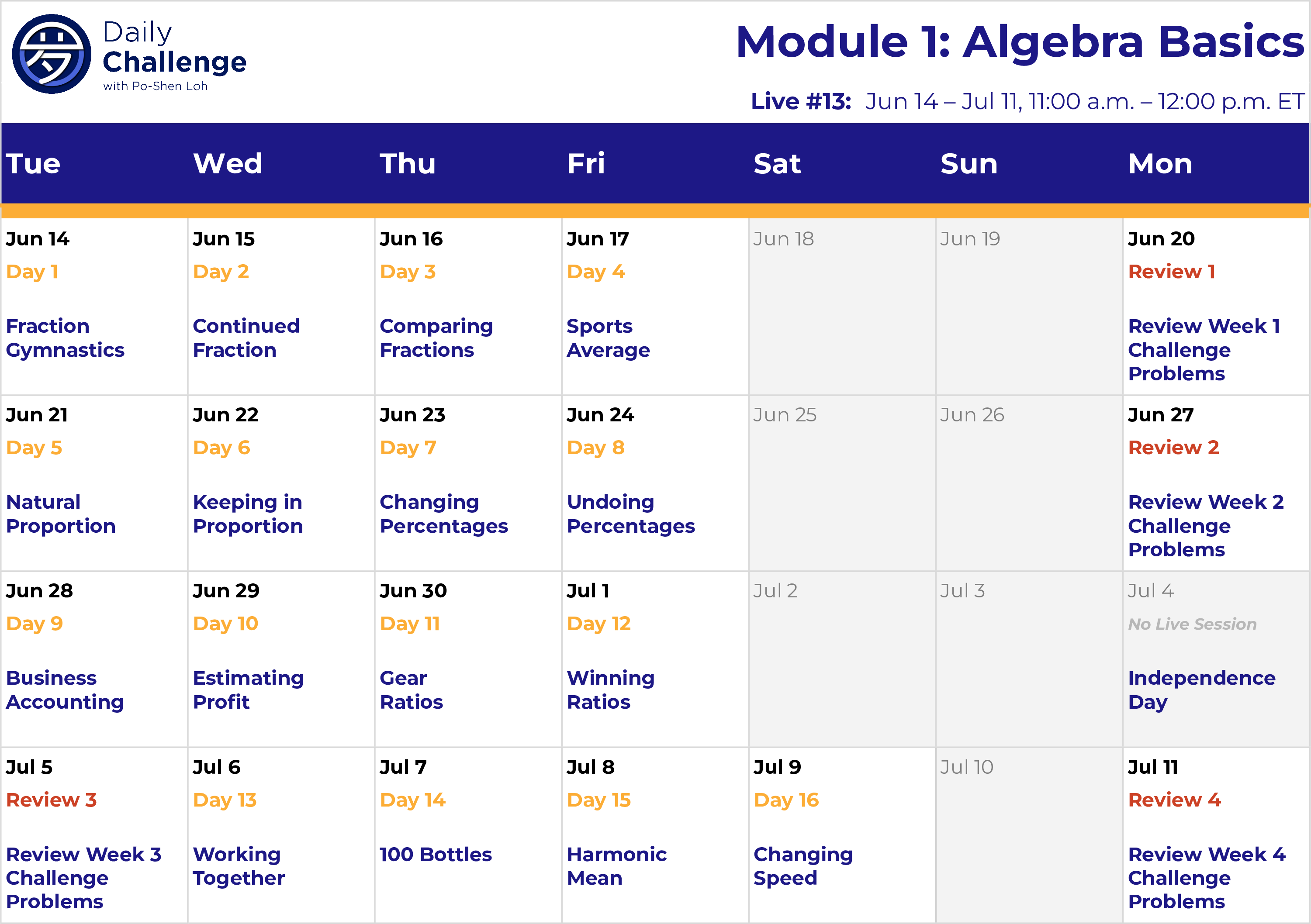 Live #13: M/Tu/W/Th/F from Jun 14, 2022 at 11am