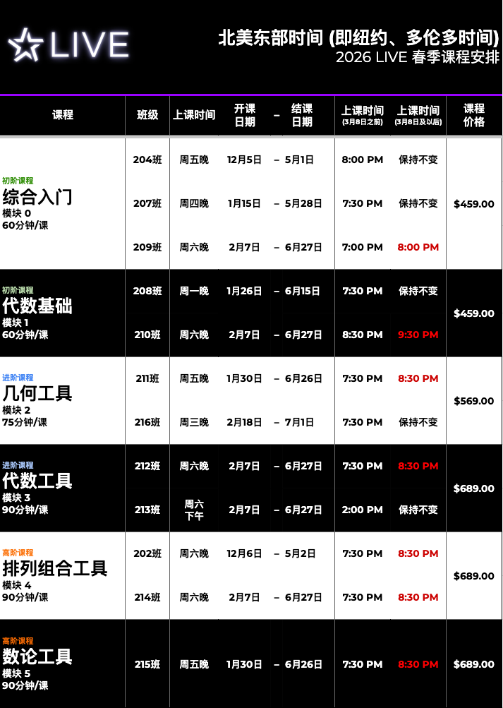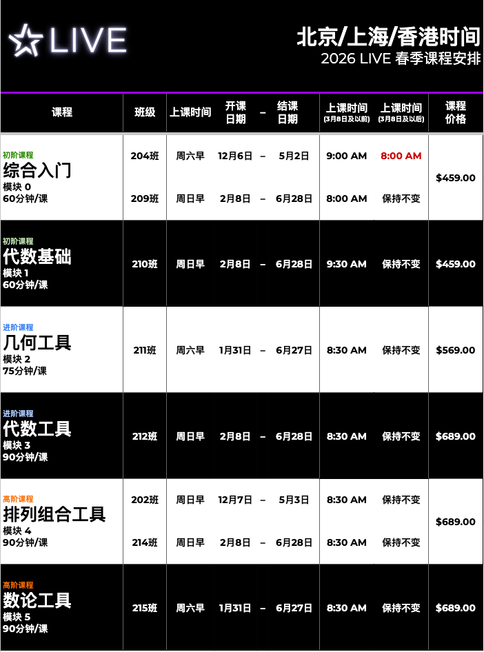 #207 班 综合入门 & #208 班 代数基础(模块 0&1)